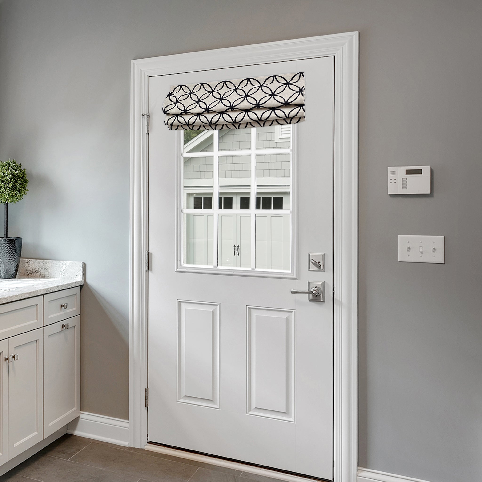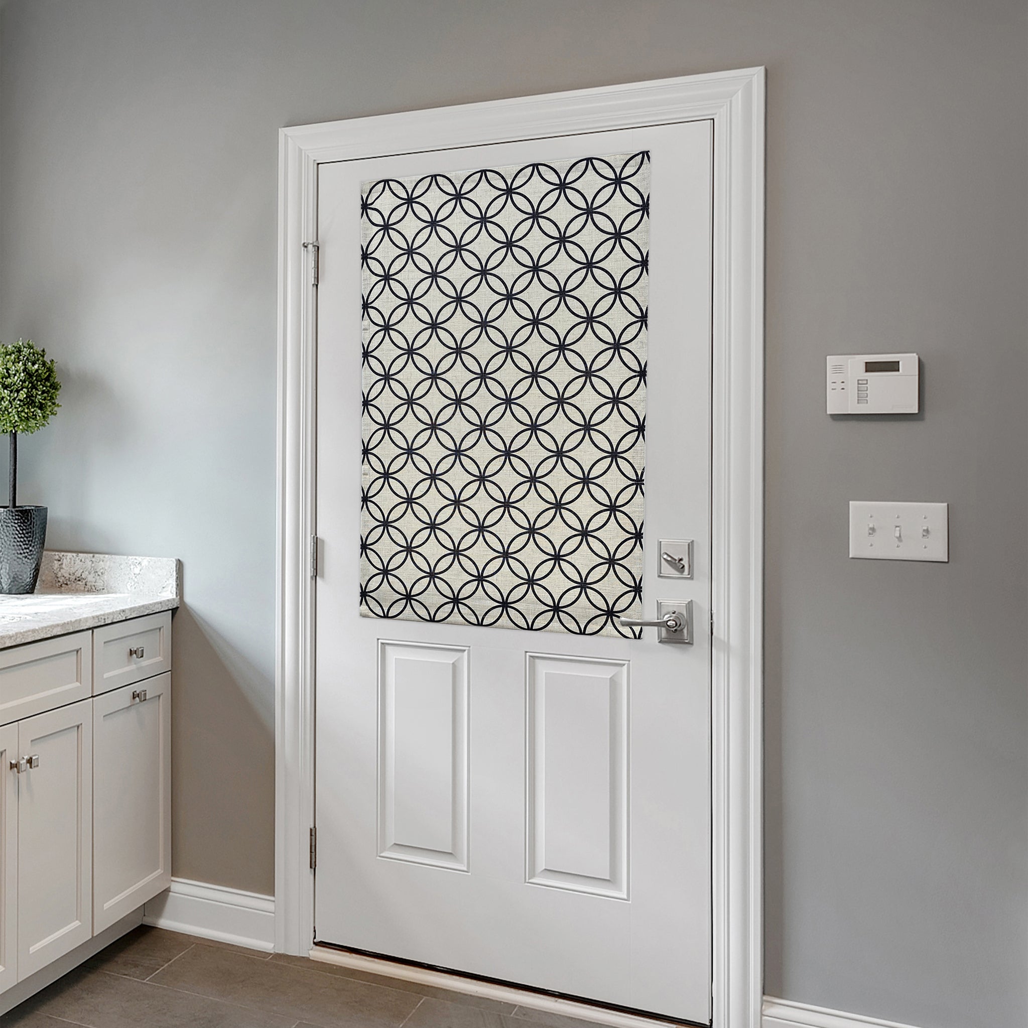 Le modèle HALO se distingue par son tissu imprimé à motif circulaire, apportant une touche graphique moderne et élégante à votre porte. Disponible en noir, vert boréal et brun, il s’intègre facilement à différents styles d’intérieur.